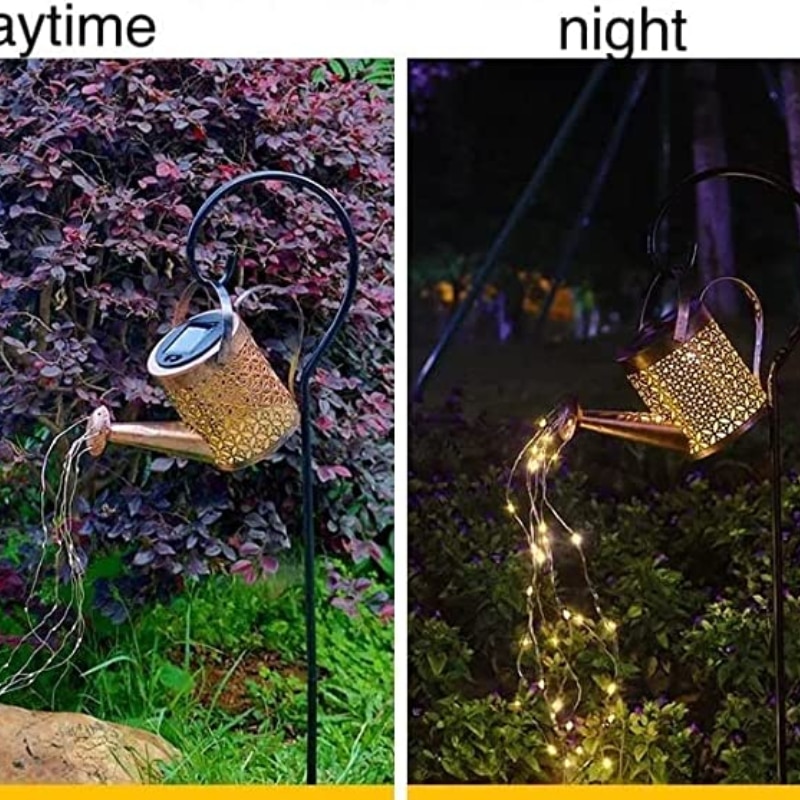 【UNIQUE DECOR】This twinkle star shower is the unique and nice decoration for garden,yard and outdoor.watering can with lights shower head string lights sends a relaxing of water simulating a gentle rain.It can be in plant, window, furniture wait for surroundings to bend easily model.