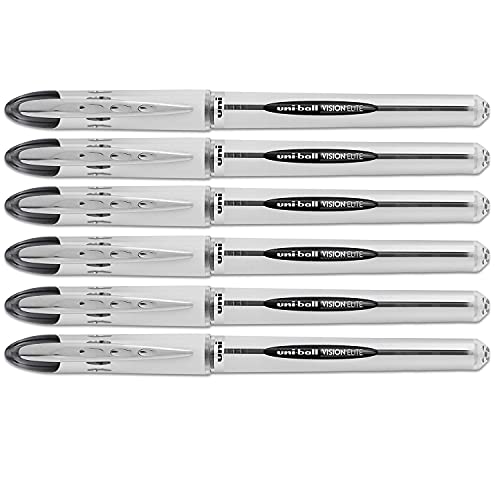 uniball Vision Elite Stick Bold Point Roller Ball, 6 Black Ink Pens (61231) (ne k)